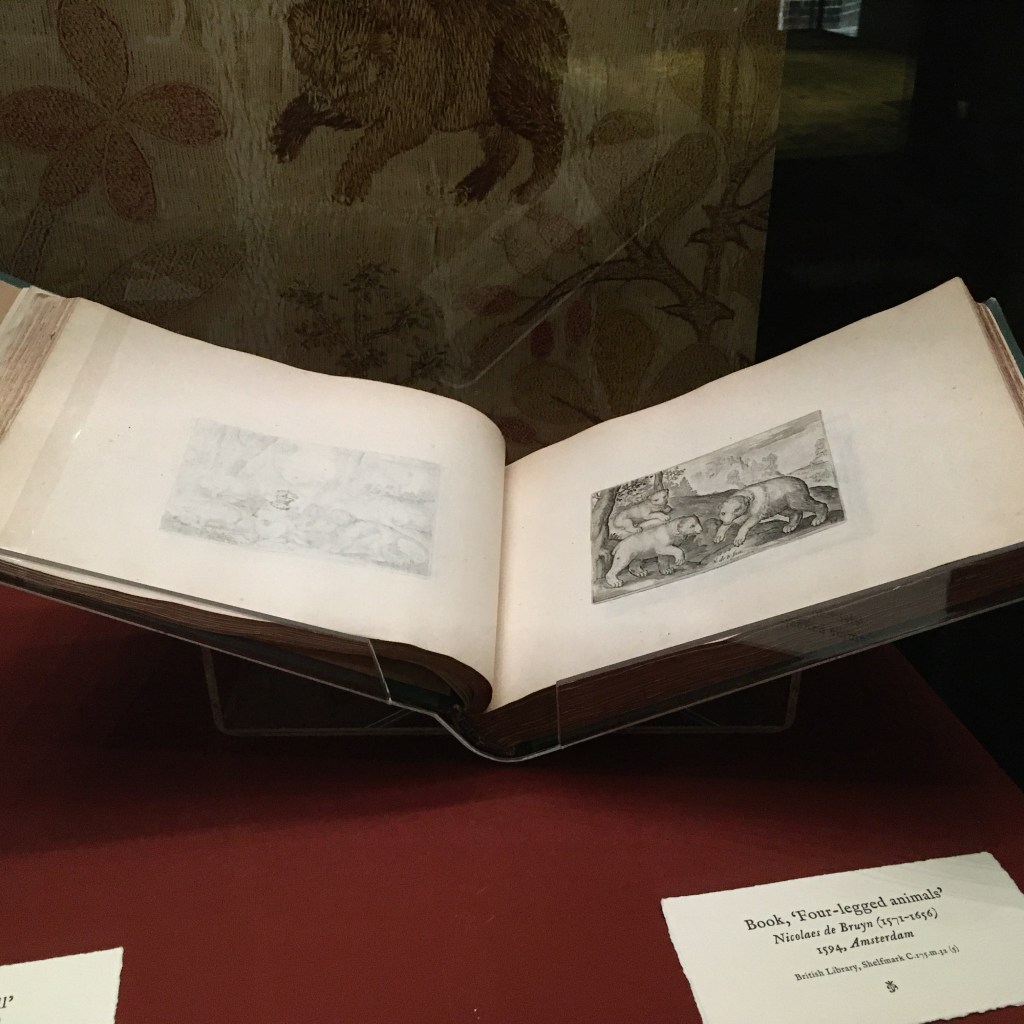 Cloth of Silver is made with a silk warp thread woven with a weft of fine silk thread encased in silver which shines and glistens with the light. A costly fabric which was then hand embroidered with silk, gold and silver thread, depicting the most beautifully detailed flowers, insects, birds and scenes from life to proclaim skill, wealth and importance. The intricately detailed wildlife has been traced to the new Elizabethan technology of printed illustration in books, and the example at the Hampton Court Palace exhibition clearly shows the embroidered bear mirroring the illustration from a book of the time. The possession of books itself was a sign of prosperity, learning and position in society and further augments the claim to royalty. Another indication of the significance of the cloth is the fact that the embroidery is worked directly onto the fabric. This is a sign of confidence in the embroiderer, as mistakes are difficult to hide or rectify, so only the most competent embroiderers would be awarded the task. It was more usual to embroider a separate piece of cloth, known as a slip, and appliqué the finished work to the garment, therefore allowing only the best to be used and mistakes rejected.