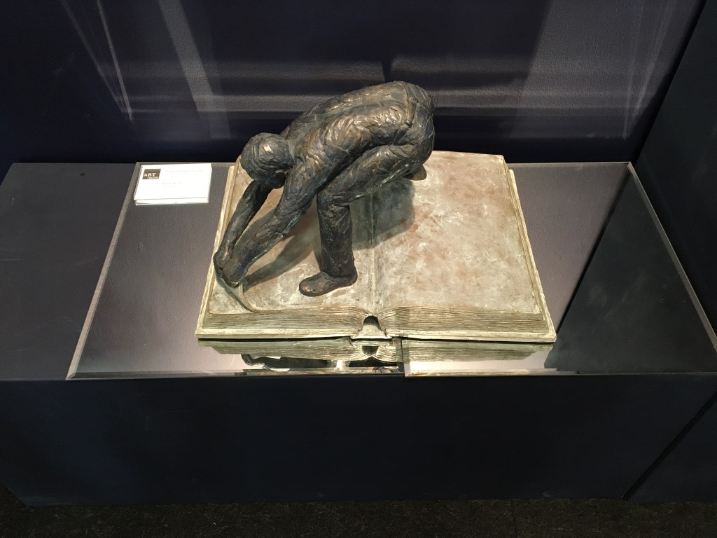 The humour of some of the pieces made me chuckle and this one of a man reading a book that was obviously a heavy read was brilliant, Turning The Page by Emma Jean Kemp shown with Art Salon, beautifully observed with the detail of the body and the carefully noted jeans with folds and stitching perfect. Grabbing the corner of the book he is working against his own weight to prise the page open, pages which shine along the edge, and one could believe his task is possible.