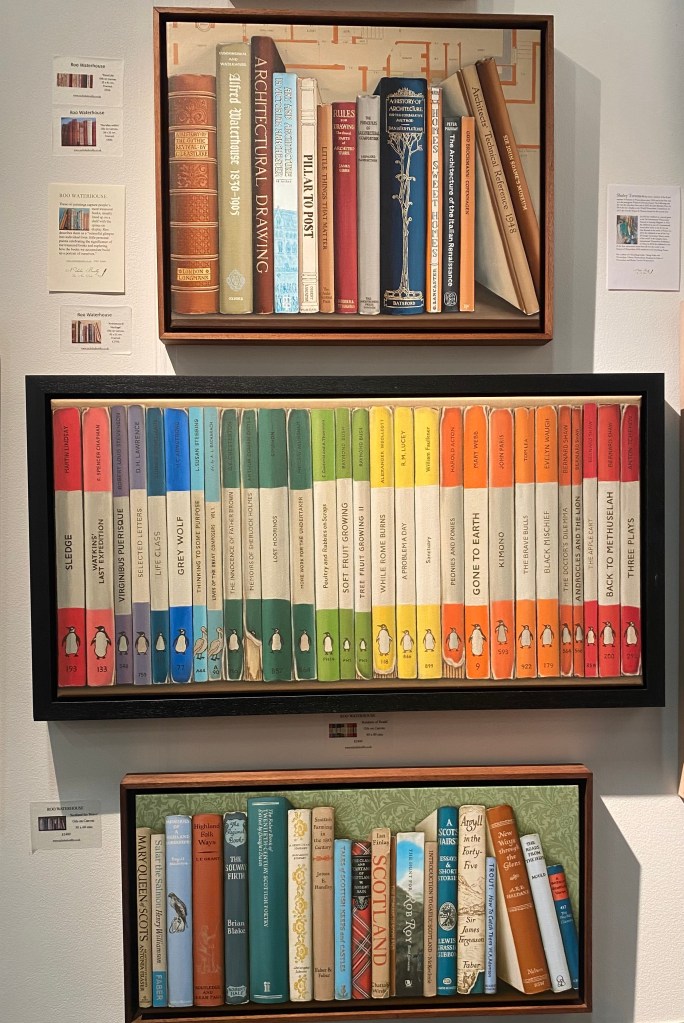 Books and paper featured strongly and I was particularly taken by Roo Waterhouse from Nicholas Bowlby Fine Art Dealer and her Shelf Portraits, realist paintings of books on a shelf that illustrate a person, place, or event and can be personalised to order. Colourful, joyful, and cleverly executed it was like reaching out for a favourite, well-loved read.