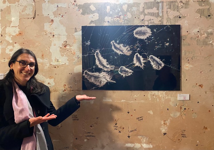 Light as air the feathers captured in Alessia Sissa’s photograph The Catch are similarly engaging. The fragility of the spider’s web and the feathers appearing to tremble in their captivity added a lightness to the industrial surroundings. Alessia’s concrete wall was impenetrable and once giving up to the vagaries of the surface which dictated its position, it positively enhanced the space; contrasting the delicate subject with the unforgiving environment somehow accentuated its beauty.