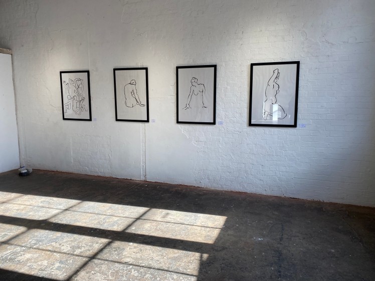 Alice Dunn Ribeiro showed how to maximise the simple lines of one white wall, this image catching the sunshine on the day after the Private View where she had sold 3 of 4 of her quiet, confident, contemplative and gentle studies of the human form. Best position in the gallery and made the most of the natural light.
