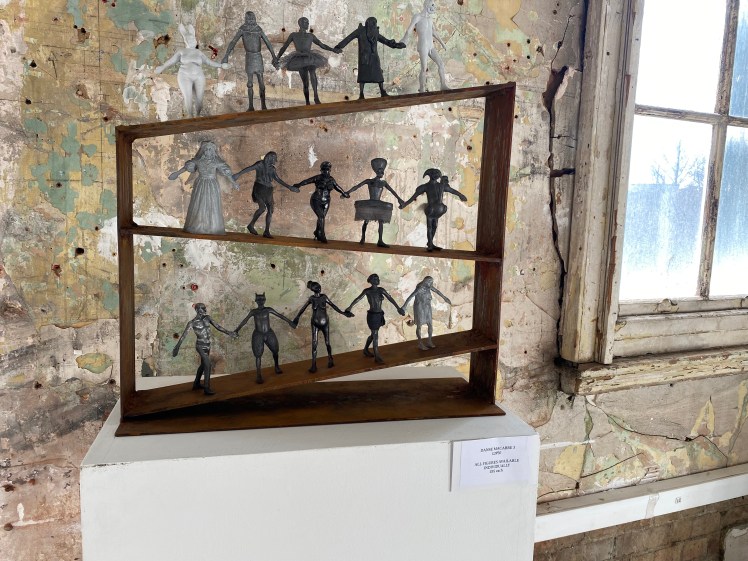 Everlasting Joy another piece by Kate Crumpler in a different room, sparked a fountain of joy, yellow and cheerful, springlike and indeed joyous. It looked like it was, or could be any minute, spinning and twirling, spilling its yellow joy for everyone. Thank you Kate for giving me food for thought. An eclectic mix of work in an interesting and unusual space, the whole experience was a positive one. I learned a lot and met some lovely people. It was uplifting to see a return to large gatherings of like-minded people, enjoying a mutual love of art in all its forms; a spark to ignite the future which promises much.